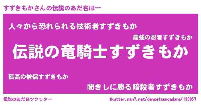 | ヘコむあだ名 | 『すずにー』『すずきもか(笑)』 |
