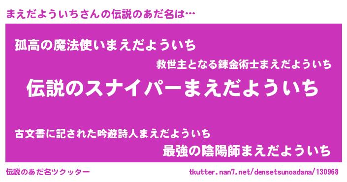 | 胡散臭い通販商品みたいなあだ名 | 『必ず成功する霊験あらたかなお札…その名も「まえだよういち」』 |