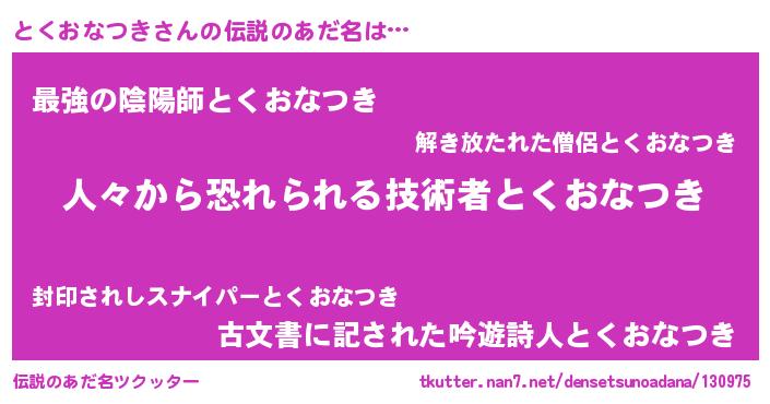 | 男性向けラノベタイトル風あだ名 | 『トクオナツキスレイヤー』 |