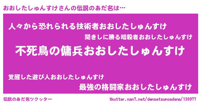| 恥ずかしいあだ名 | 『プリティーおおしたしゅんすけ』 |