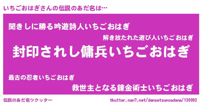 | 男性向けラノベタイトル風あだ名 | 『いちごおはぎ~年齢イコール彼女いない歴の魔法使い~』 |