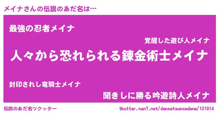 | 女子向けラノベタイトル風あだ名 | 『メイナなんてお断りですっ。』 |