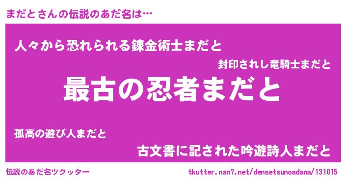 | ヘコむあだ名 | 『なまこ酢』『まだと(小並感)』 |