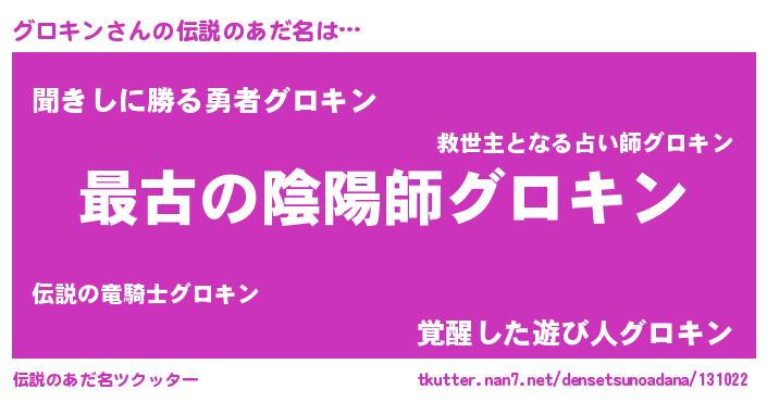 | ヒーロー風カッコイイあだ名 | 『最強戦士グロキン』『ネオグロキン』 |