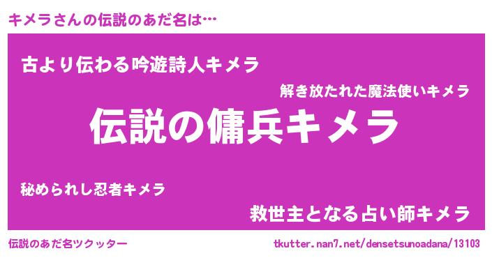 | 男性向けラノベタイトル風あだ名 | 『キメラスレイヤー』 |