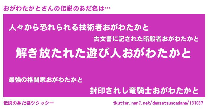 | ヒーロー風カッコイイあだ名 | 『銀牙騎士オガ』『愛の使者おがわたかと』 |