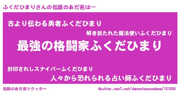 | 意味不明あだ名 | 『自称ふくだひまり』 |