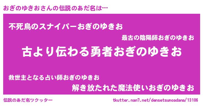 | 意味不明あだ名 | 『永久保存おぎのゆきお』 |
