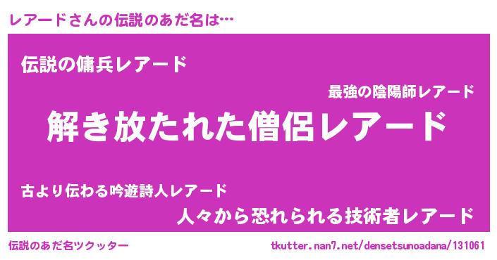 | 意味不明あだ名 | 『とにかく怪しいレアード』 |