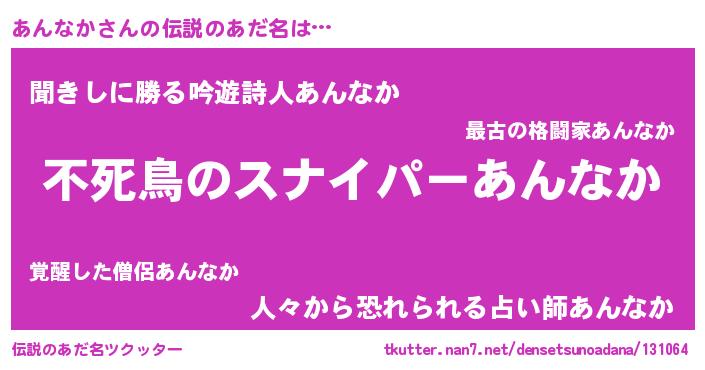 | 胡散臭い通販商品みたいなあだ名 | 『モテモテ間違いなし霊験あらたかなお札…その名も「あんなか」』 |