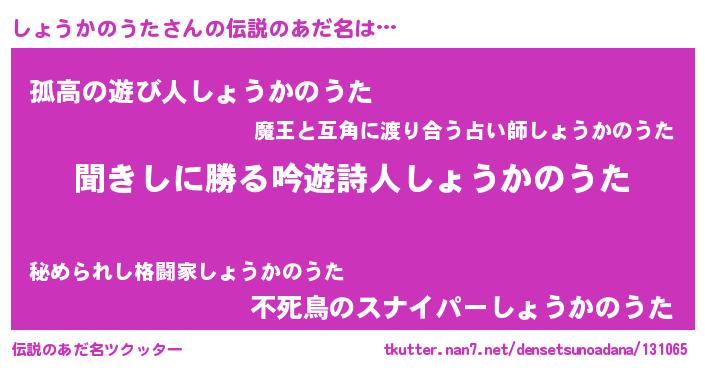 | 男性向けラノベタイトル風あだ名 | 『しょうかのうたという概念が存在しない退屈な世界 』 |