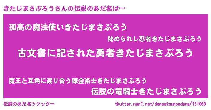| ヒーロー風カッコイイあだ名 | 『ネオキタジマサブロウ』『黄金騎士キタ』 |