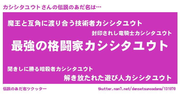 | ヒーロー風カッコイイあだ名 | 『ウルトラカシシタユウトマン』 |