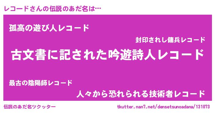 | ヘコむあだ名 | 『レコード(小並感)』『レコっぺ』 |