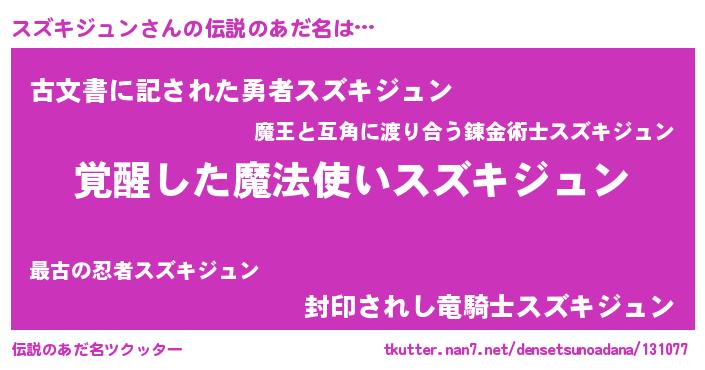 | ポケモン風あだ名 | 『ヒスズキジュン』『ゼニスズ』 |