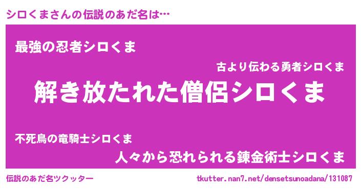 | ヒーロー風カッコイイあだ名 | 『仮面シロダー』『最強戦士シロクマ』 |