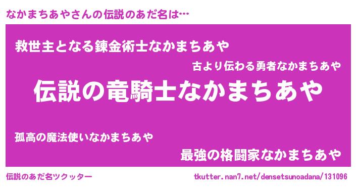 | ヒーロー風カッコイイあだ名 | 『スーパーナカマチアヤ』 |