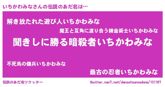 | 意味不明あだ名 | 『自称いちかわみな』 |
