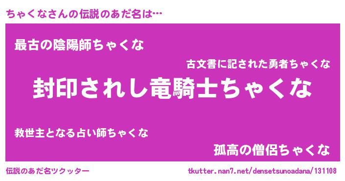 | ヒーロー風カッコイイあだ名 | 『スーパーチャクナ』『仮面チャダー』 |