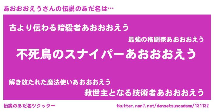 | ヒーロー風カッコイイあだ名 | 『スーパーアオオオエウ』『仮面アオダー』 |