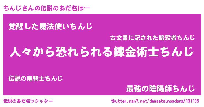 | 意味不明あだ名 | 『住所不定無職ちんじ(71歳)』 |
