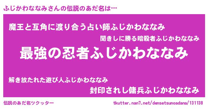 | 意味不明あだ名 | 『住所不定無職ふじかわななみ(40歳)』 |