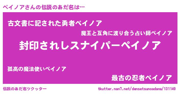 | 意味不明あだ名 | 『ペロリンペイノア』『自称ペイノア』 |