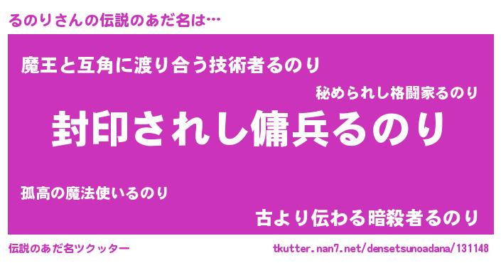 | 胡散臭い通販商品みたいなあだ名 | 『億万長者になれる水晶球…その名も「るのり」』 |