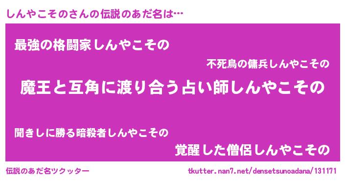 | 男性向けラノベタイトル風あだ名 | 『ノーゲーム・ノーシンヤコソノ』 |