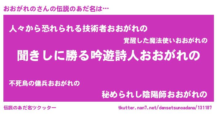 | 意味不明あだ名 | 『永久保存おおがれの』 |