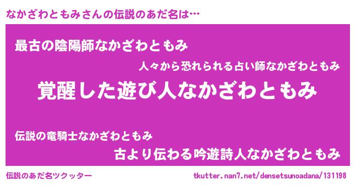 | 男性向けラノベタイトル風あだ名 | 『なかざわともみの嫁は女の子じゃないと思った?』 |