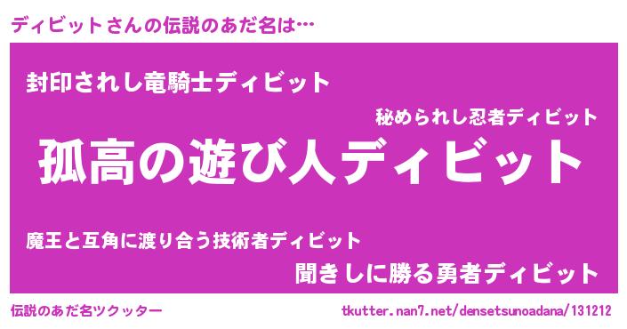 | 女子向けラノベタイトル風あだ名 | 『ディビットなんてお断りですっ。』 |