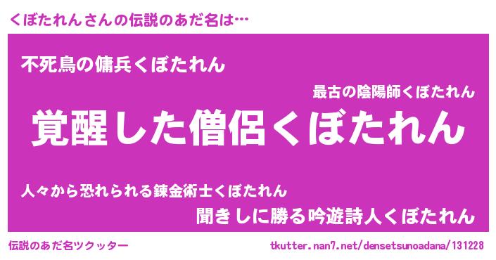 | 男性向けラノベタイトル風あだ名 | 『Re:くぼたれんから始める異世界生活』 |