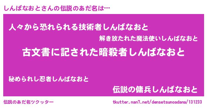 | 肩書あだ名 | 『しんばなおと少将』『しんばなおと閣下』 |
