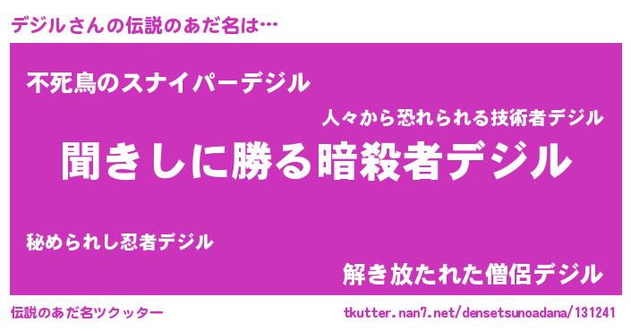 | 男性向けラノベタイトル風あだ名 | 『魔法科高校のデジル』 |