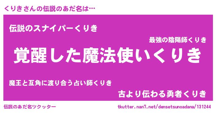 | ヒーロー風カッコイイあだ名 | 『幻影騎士クリ』『スーパークリキ』 |