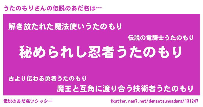 | 意味不明あだ名 | 『住所不定無職うたのもり(41歳)』 |