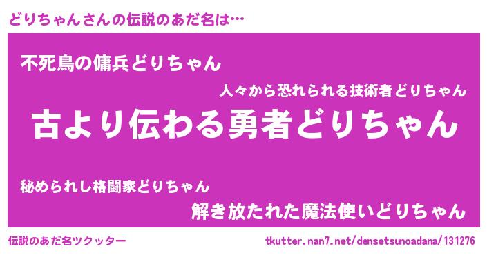 | 意味不明あだ名 | 『永久保存どりちゃん』 |