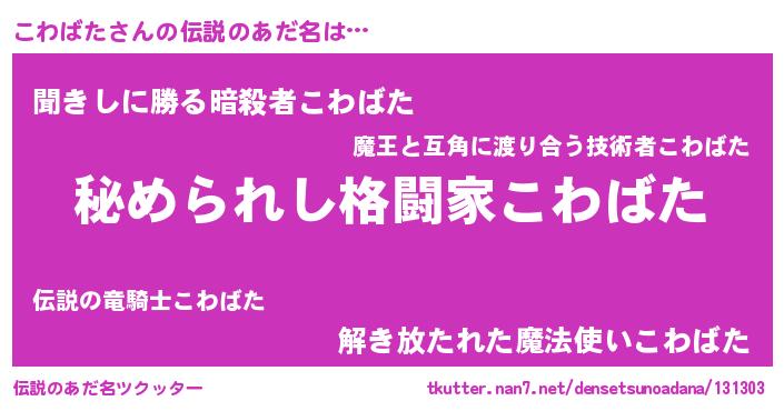 | ヒーロー風カッコイイあだ名 | 『ウルトラこわばたマン』『ネオコワバタ』 |