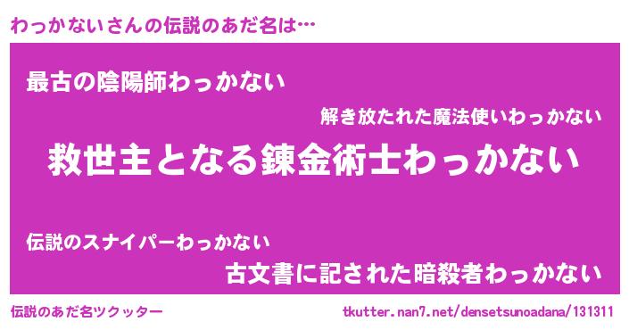 | ヒーロー風カッコイイあだ名 | 『慈愛の使者わっかない』『仮面ワッダー』 |