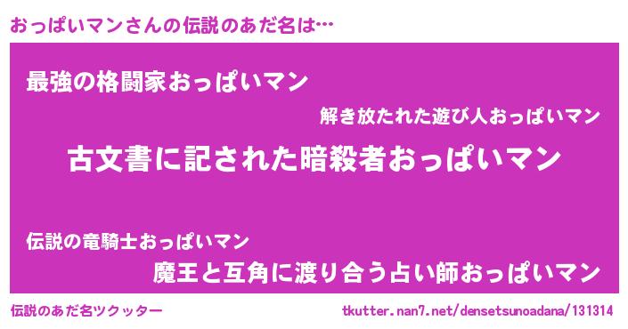 | ヒーロー風カッコイイあだ名 | 『ネオオッパイマン』『魔戒騎士オッ』 |