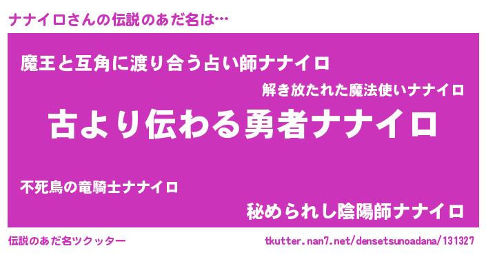 | 意味不明あだ名 | 『永久保存ナナイロ』『自称ナナイロ』 |