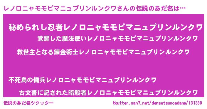 | 意味不明あだ名 | 『自称レノロニャモモピマニュプリンルンクワ』 |