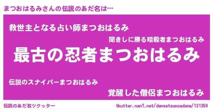 | 意味不明あだ名 | 『自称まつおはるみ』 |