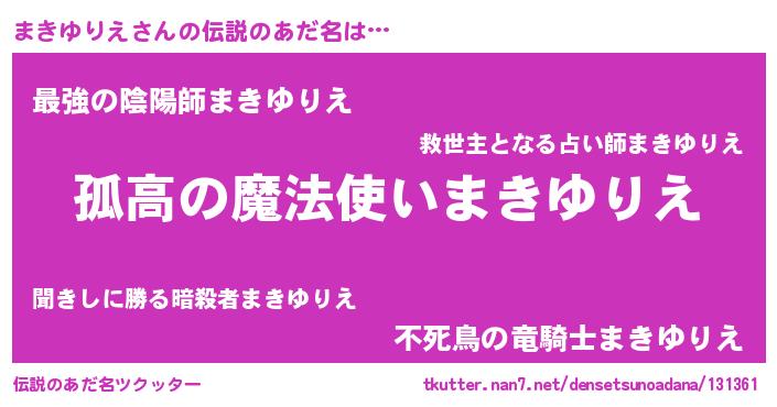 | 意味不明あだ名 | 『とにかく怪しいまきゆりえ』 |