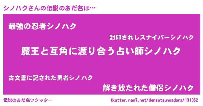 | ヒーロー風カッコイイあだ名 | 『愛の使者シノハク』『究極戦士シノハク』 |