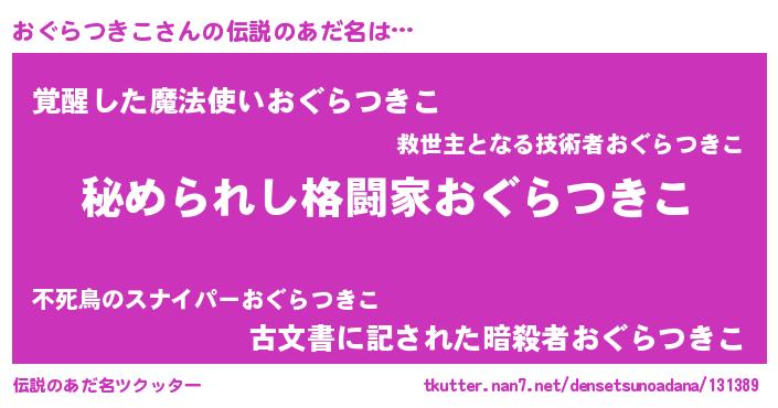 | 意味不明あだ名 | 『住所不定無職おぐらつきこ(4歳)』 |