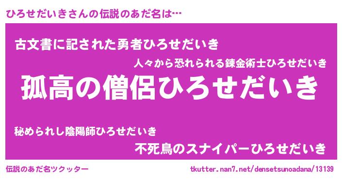 | ヒーロー風カッコイイあだ名 | 『暗黒騎士ヒロ』『ネオヒロセダイキ』 |