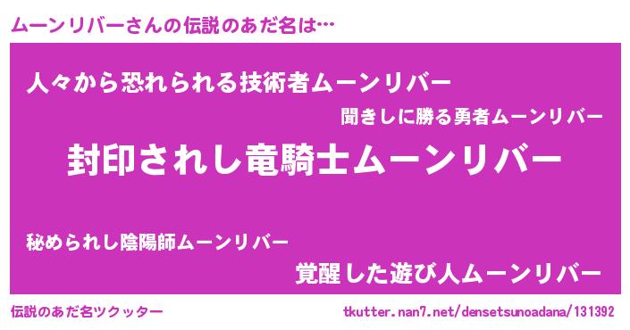 | 女子向けラノベタイトル風あだ名 | 『ムーンリバーの玉の輿計画!』 |
