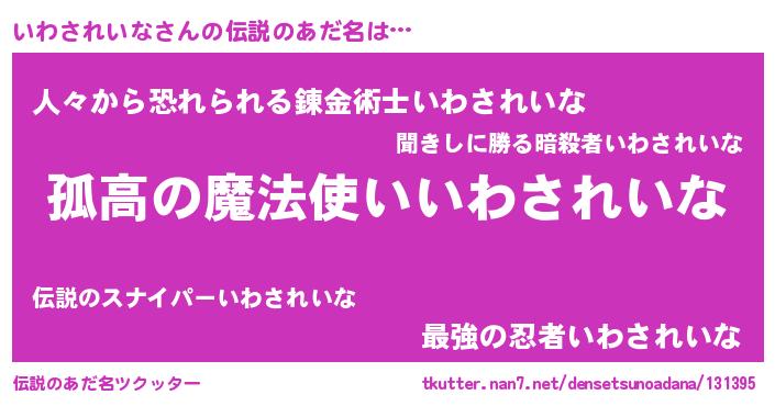 | 胡散臭い通販商品みたいなあだ名 | 『信頼と実績のサプリメント…その名も「いわされいな」』 |